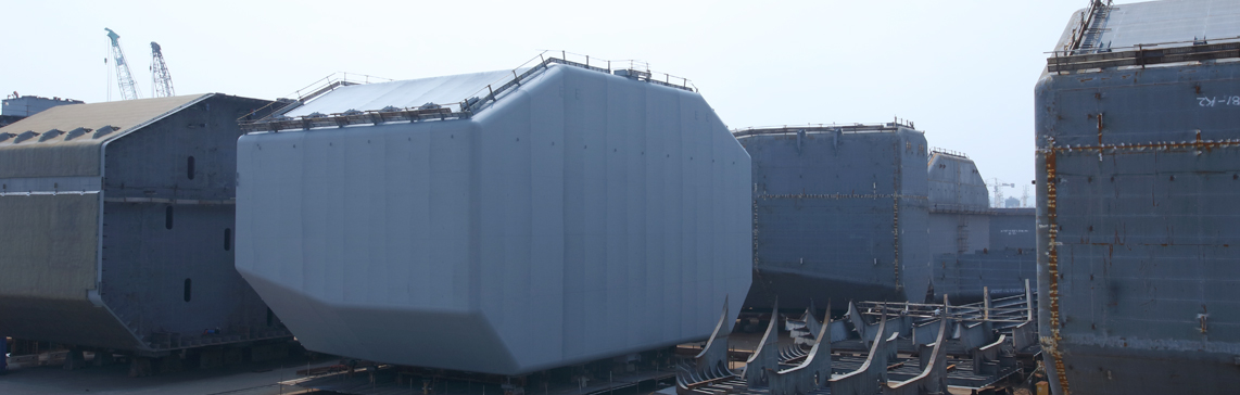 국내 1위를 달리고 있습니다. 특히 초대형 조선기자재 시장에서 핵심 경쟁력으로 꼽히는 넓은 생산부지와 풍부한 작업인력을 보유해 차별화된 경쟁력을 갖추고 있습니다. 또한 국내 업체 중 가장 넓고 평탄한 약 20만평 규모의 생산부지를 구획화해 생산능력을 극대화하고 있습니다.